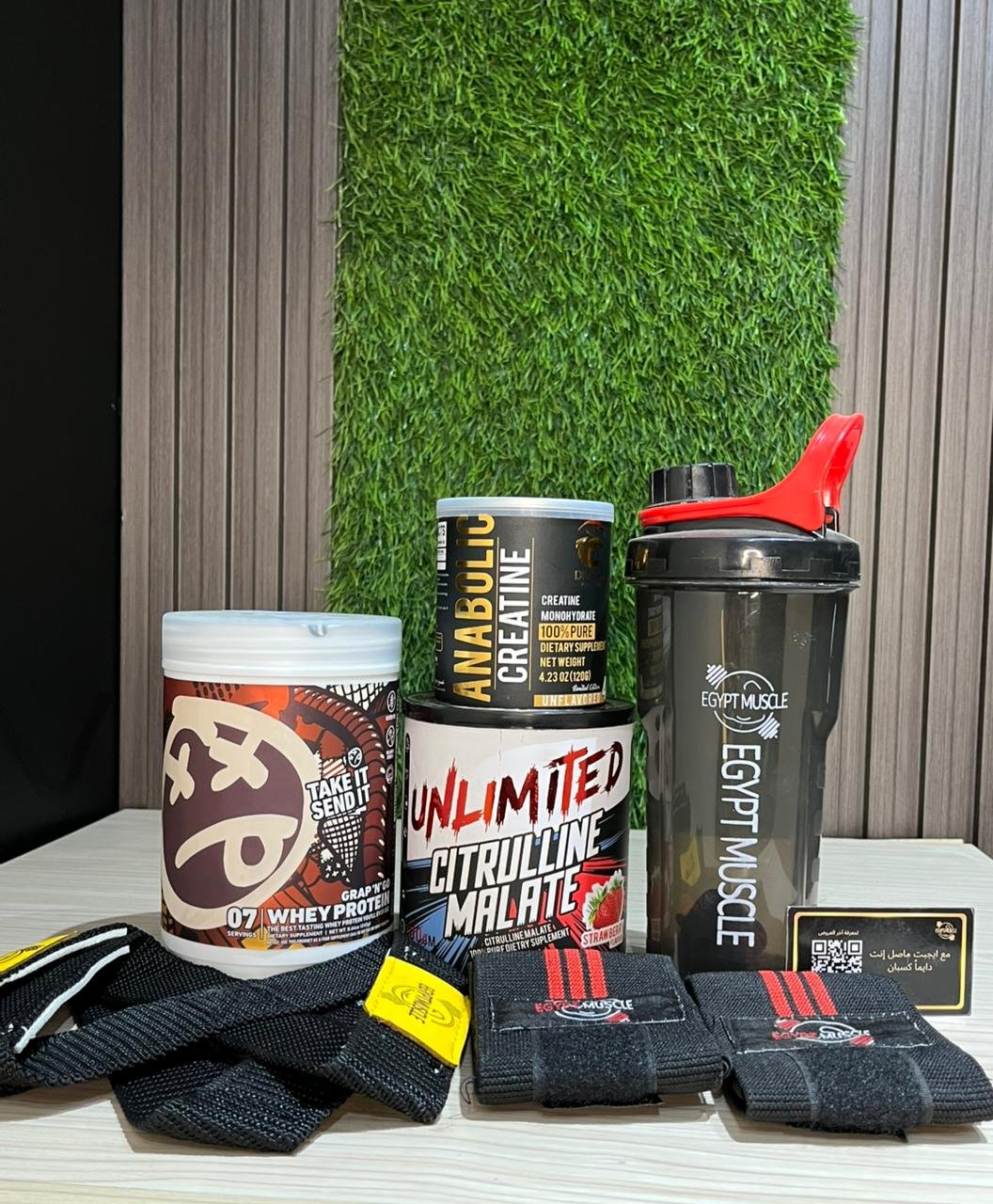 واي بروتين نضيف + كرياتين مونوهيدريت نقي + سيترولين ماليت قوي، مع هدايا كل اكسسورات التمرين اللى ممكن تحتاجها💪🎁