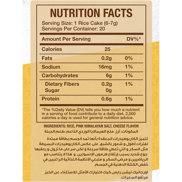 كعكة الأرز من أورجانيك نيشن هي سناك خفيف، مقرمش، ولذيذ. معمولة من مكونات طبيعية زي الأرز البني وملح الهيمالايا الوردي، ومضبوطة بنكهات مختلفة ولذيذة تناسب كل الاذواق اللي هتشبعك من غير ما تزودك سعرات كتير.